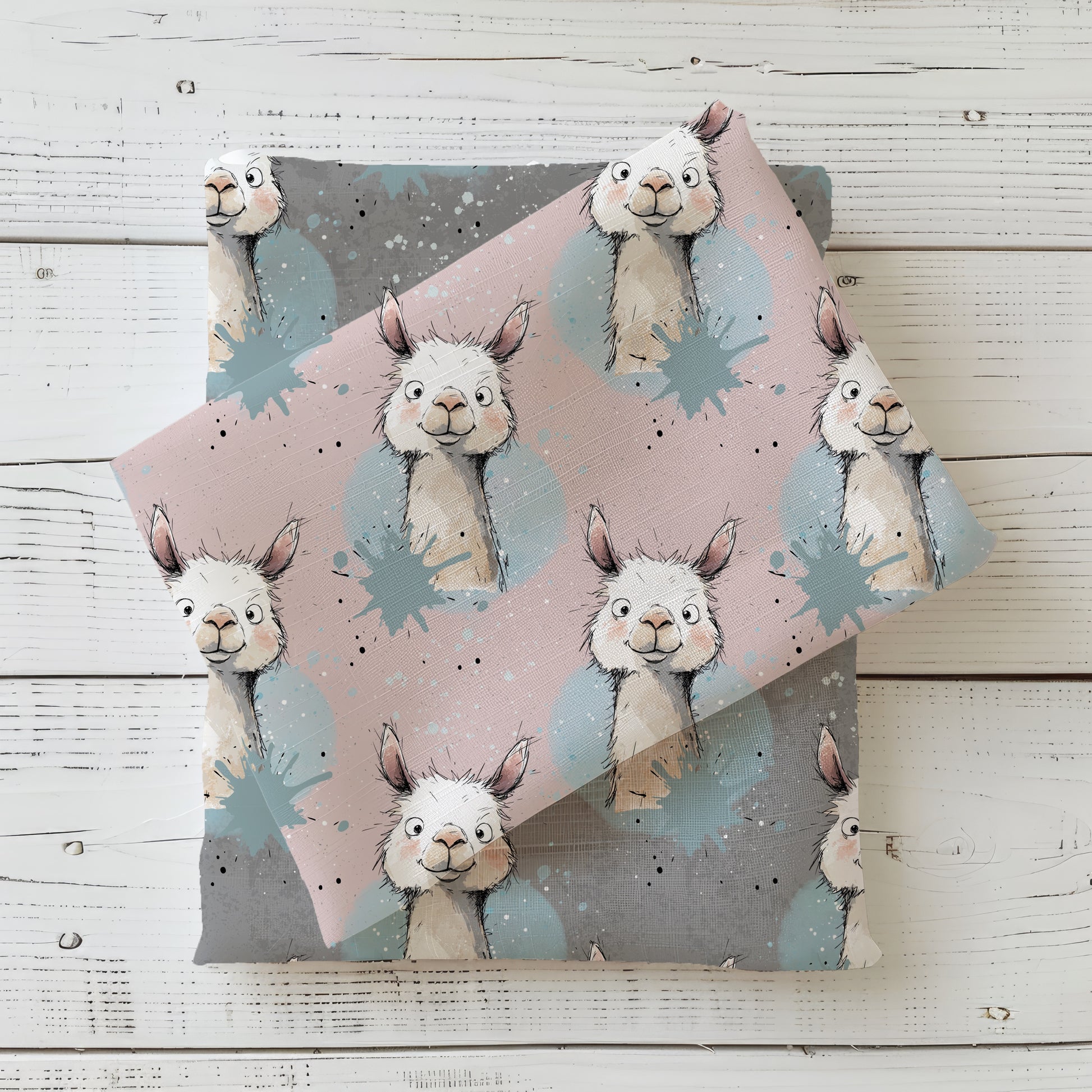 Der Stoff „Lama Rosa“ zeigt ein freundliches Lama-Motiv im modernen Illustrationsstil. Die Kombination aus sanften Rosatönen, hellen Lamas und kreativen Farbspritzern sorgt für ein lebendiges und zugleich harmonisches Design. Dadurch wirkt der Stoff verspielt und modern und passt besonders gut zu Kinderkleidung mit einem fröhlichen Look.