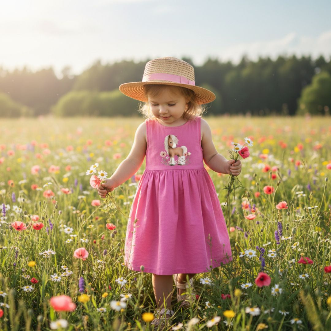 Bügelbild „Blütenpony“ – DTF Transfer für Baby- & Kinderkleidung