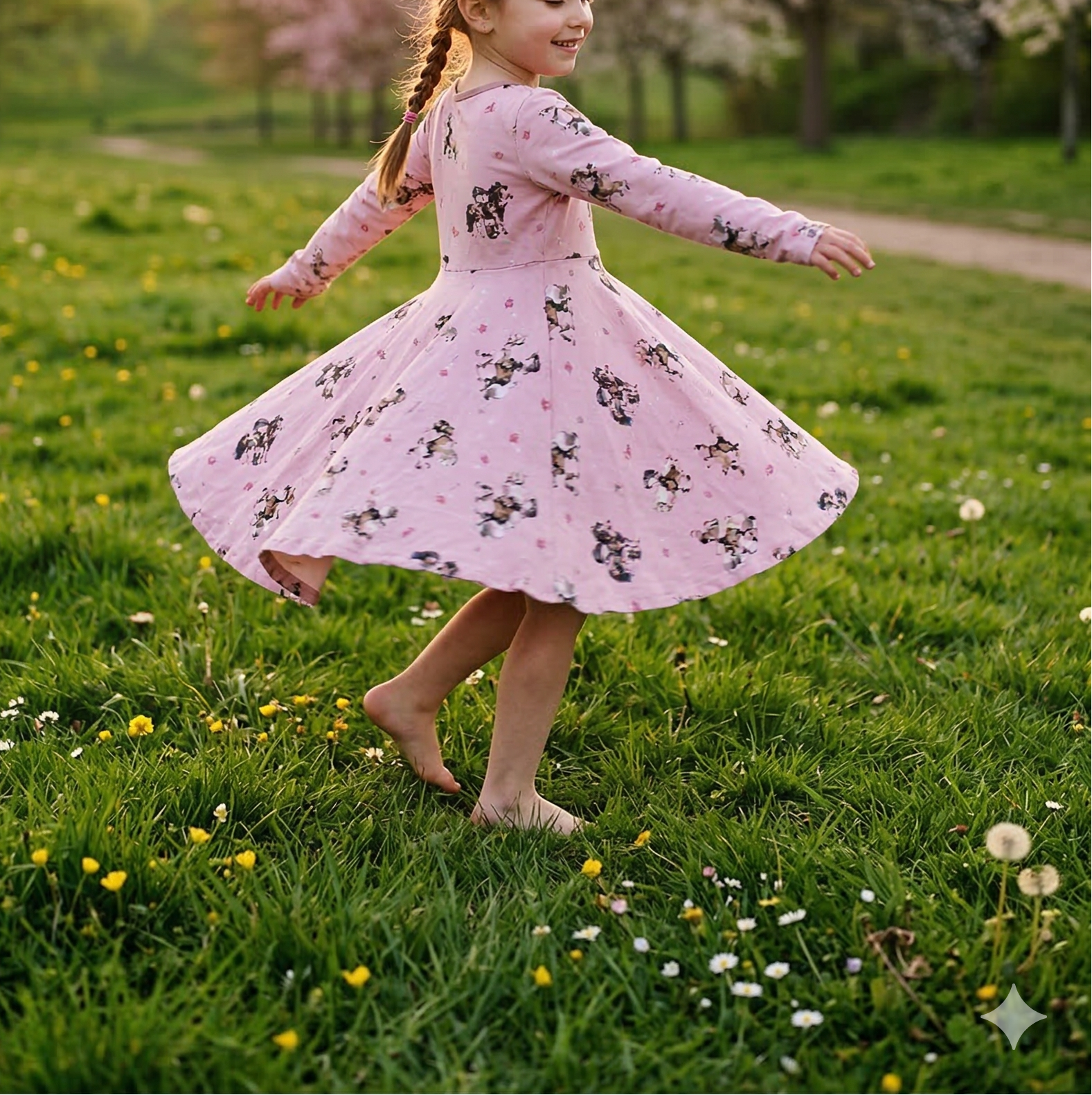 Der sanfte rosafarbene Hintergrund unterstreicht das Motiv und sorgt für eine harmonische, kindgerechte Optik. Die feinen Details und die weichen Farbtöne verleihen dem Design eine ruhige und verträumte Ausstrahlung.