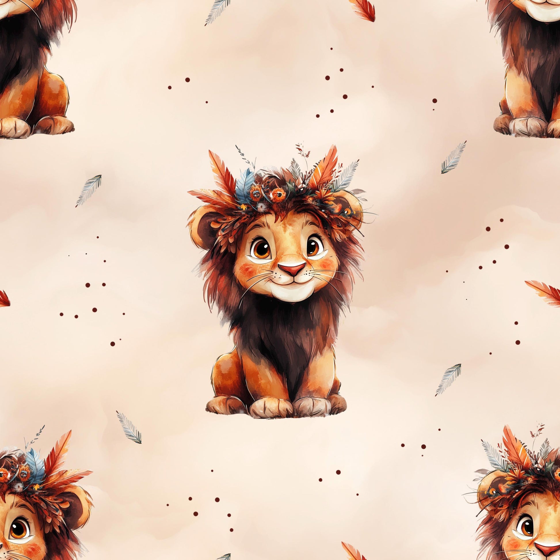 Mit dem Stoffdesign „Kleiner Löwe“ zieht ein neuer Liebling ins Nähzimmer ein: verspielt, mutig und voller Lebensfreude. Der fröhlich blickende Löwenjunge mit seinem süßen Federkranz auf zartem Hintergrund bringt Kinderaugen zum Strahlen – und verwandelt jedes Nähprojekt in ein echtes Lieblingsstück.