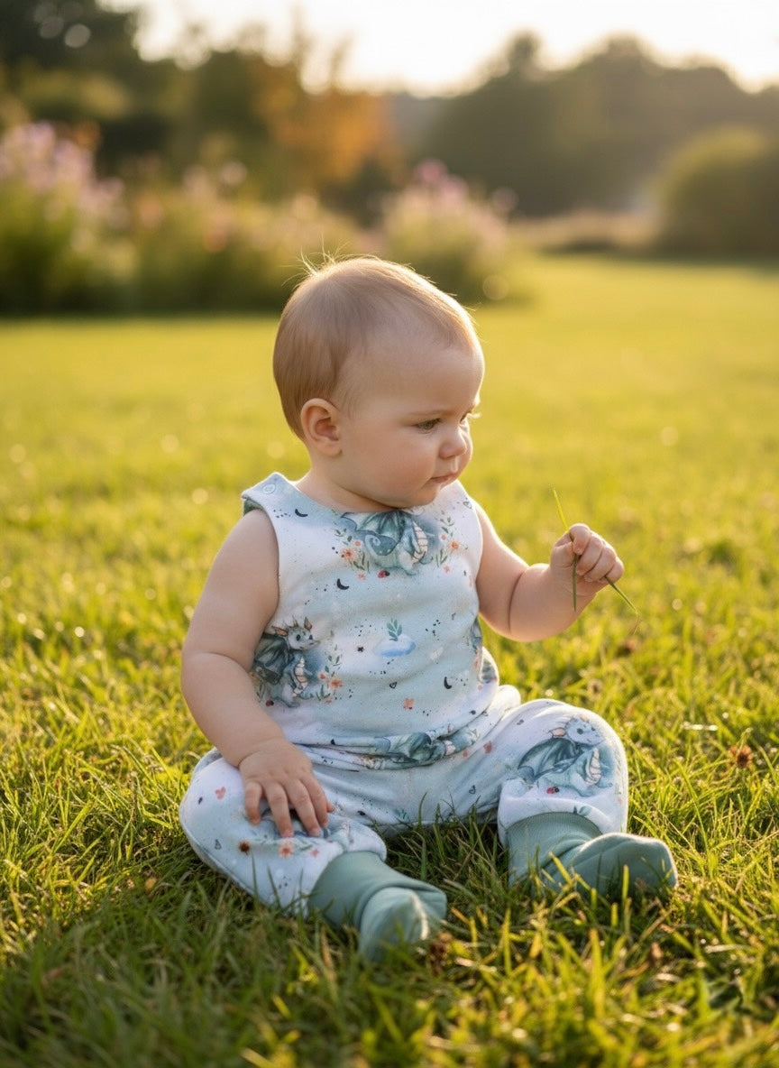 Handgefertigter Baby-Strampler mit süßem Drachen – aus hochwertigem French Terry