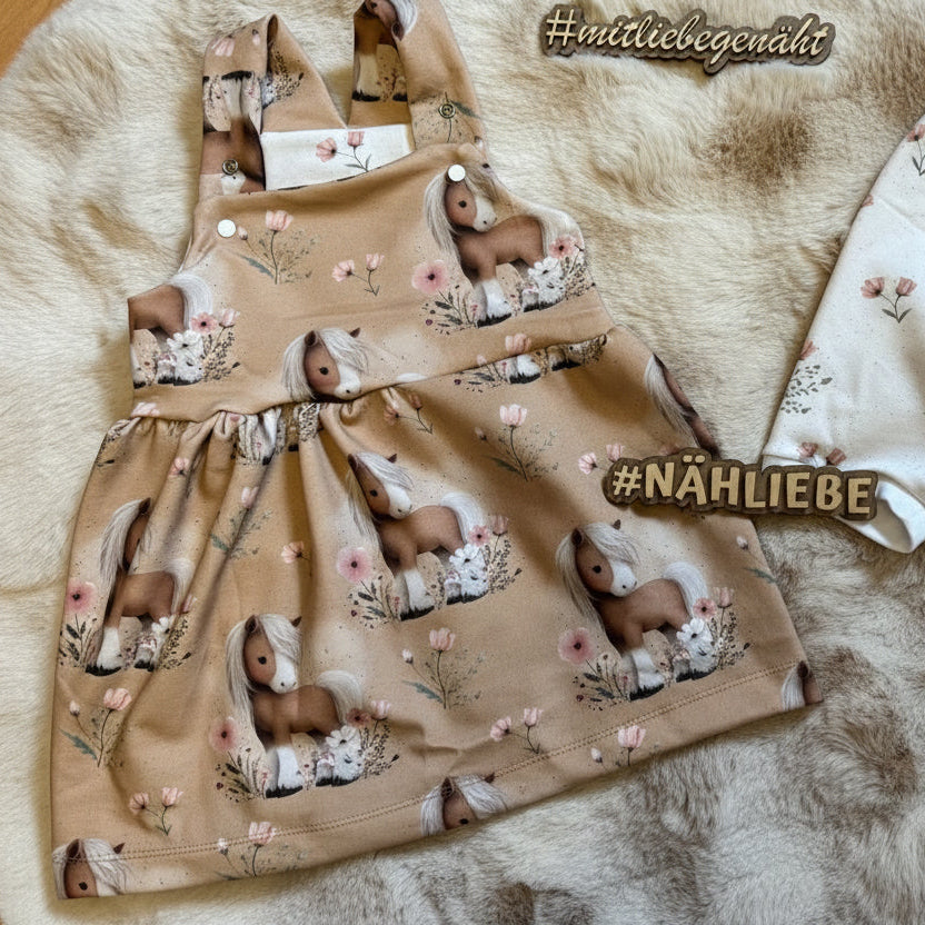 Der Stoff „Blütenpony“ zeigt ein liebevoll gestaltetes Pferdemotiv mit zarten Blumen und einer harmonischen Farbgestaltung. Die Kombination aus Pony und floralen Elementen verleiht dem Design eine ruhige, freundliche Ausstrahlung. Dadurch wirkt der Stoff verspielt und gleichzeitig sanft, was ihn besonders passend für Kinderkleidung mit einem natürlichen und liebevollen Stil macht.Bestellinformationen & Zuschnitt