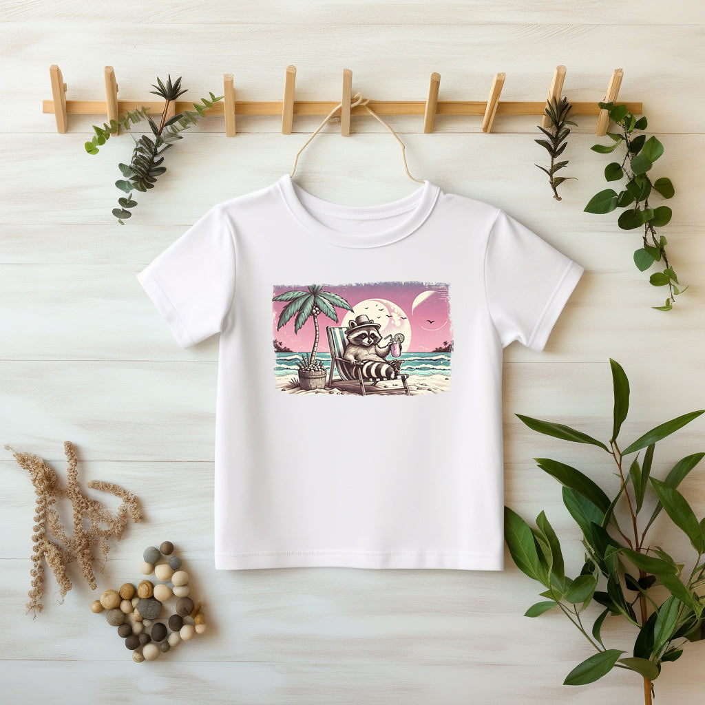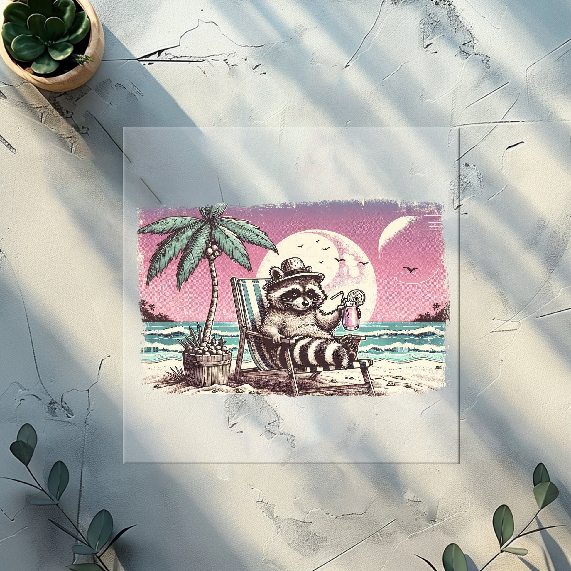 Bügelbild Waschbär am Strand für helle & dunkle Textilien