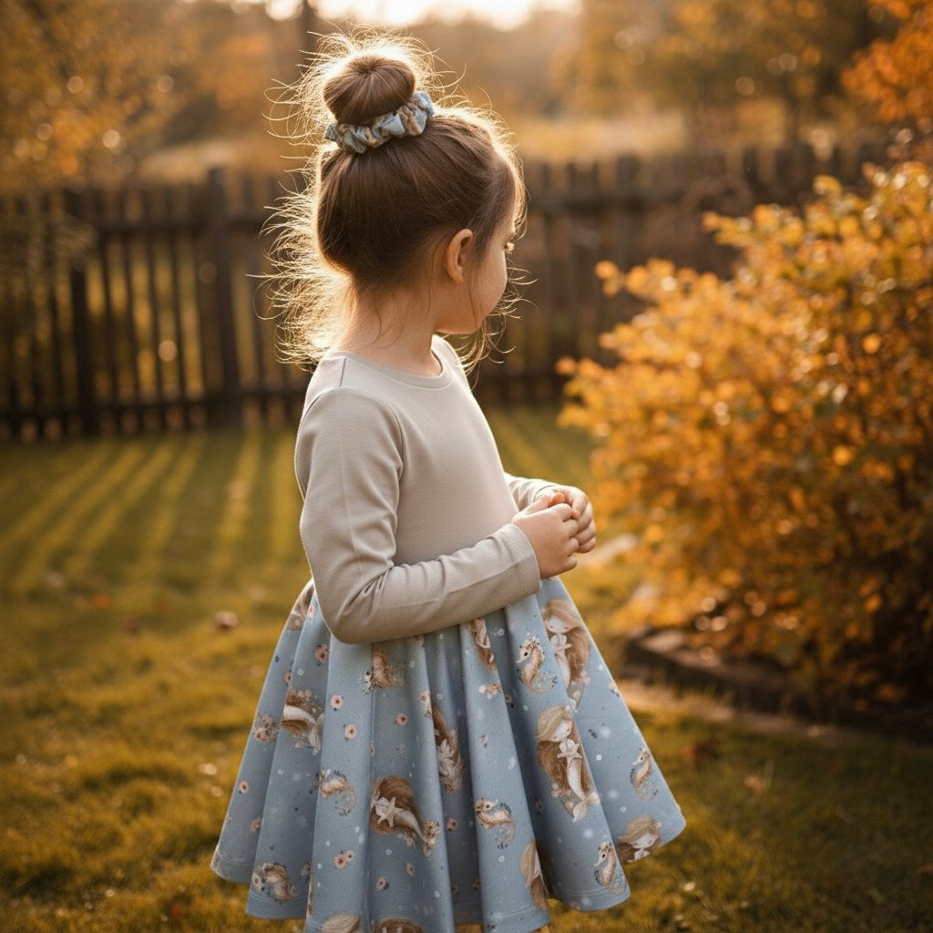 Ob Alltag oder Kindergeburtstag – das Drehkleid ist ein echter Hingucker und ein neues Lieblingsstück für kleine Meerjungfrauen.