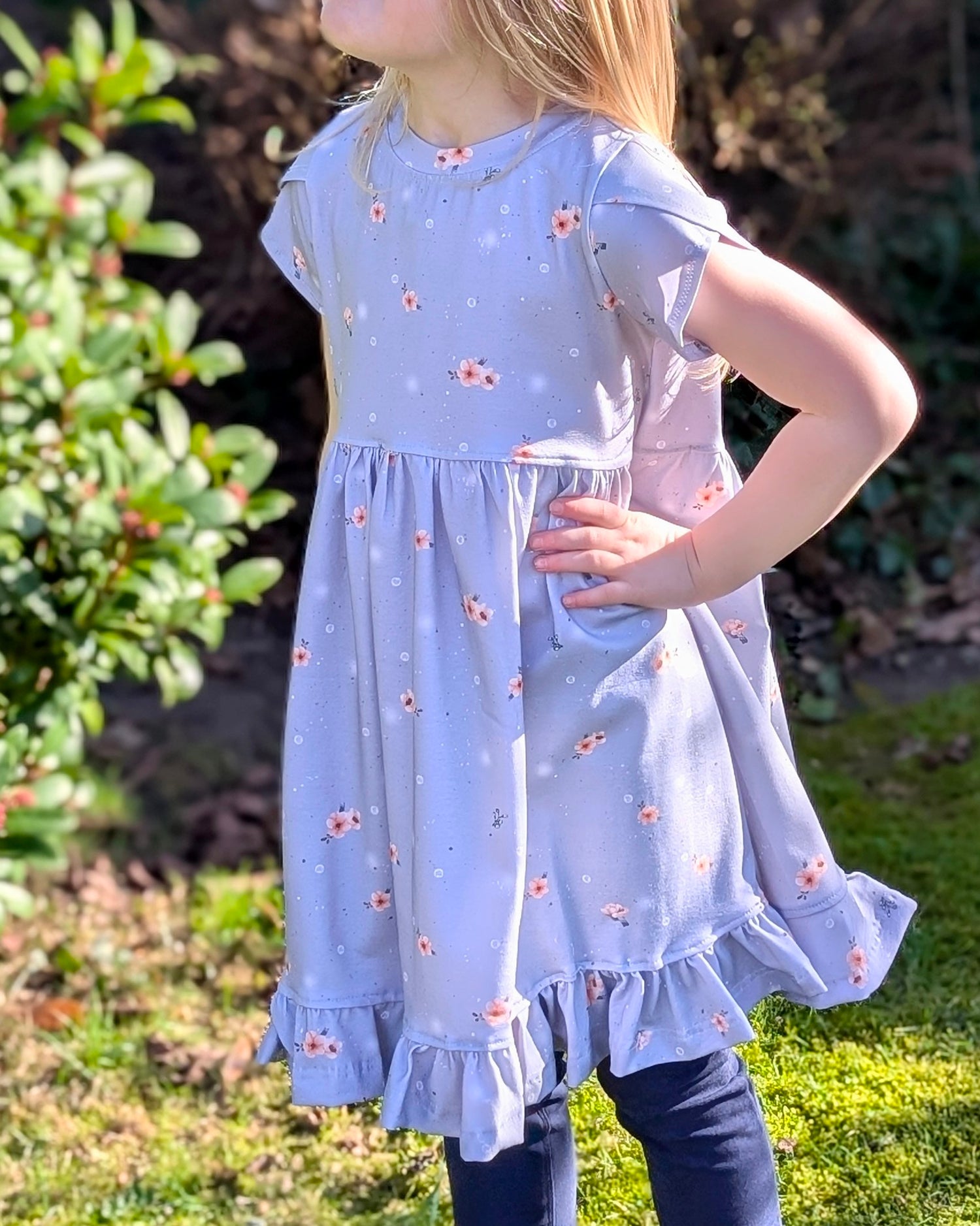 Jersey ist ein weicher und elastischer Stoff, der sich besonders angenehm auf der Haut anfühlt. Durch seine Dehnbarkeit eignet er sich hervorragend für bequeme Kleidung für Babys, Kinder und Erwachsene.