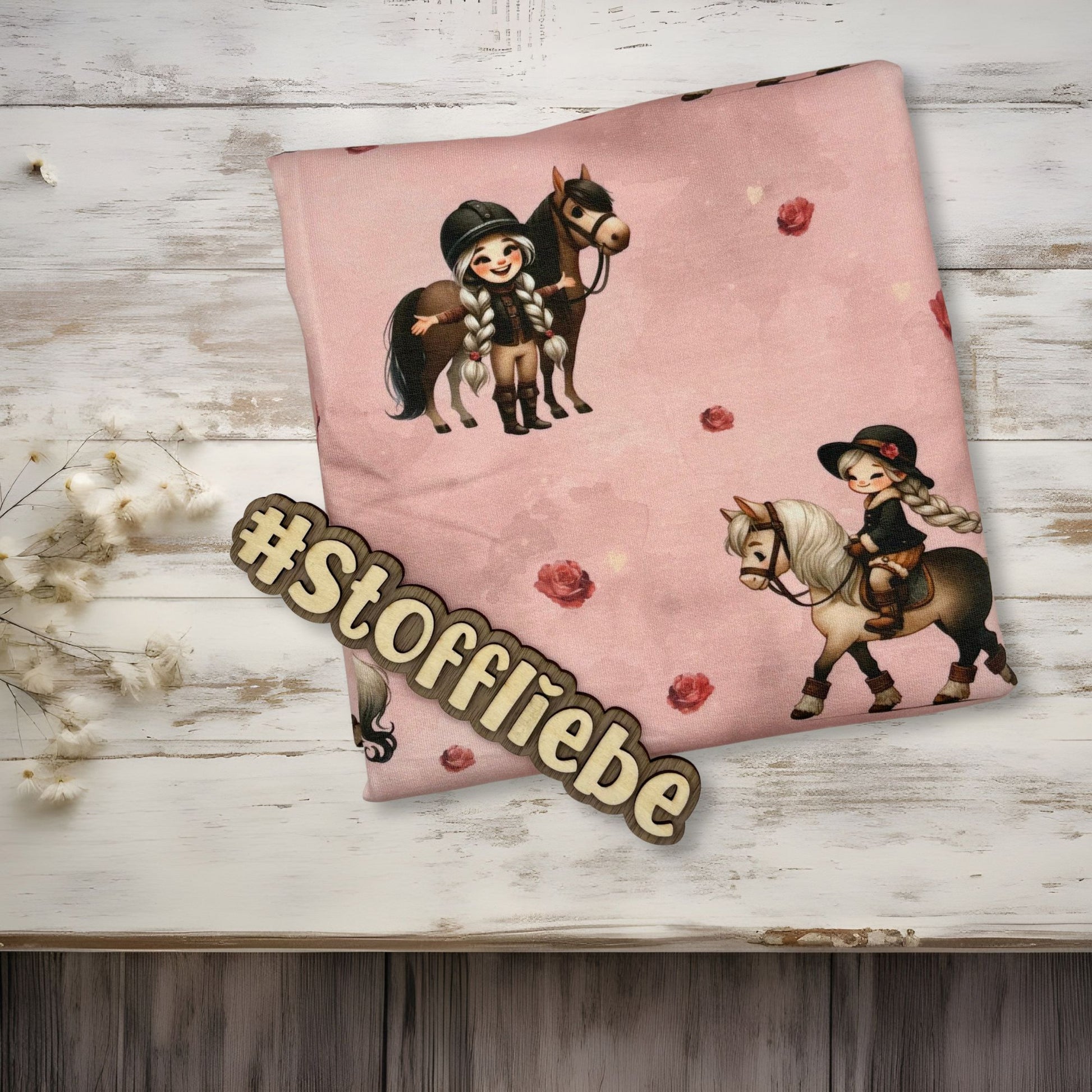 Unser French Terry „Pferd & Mädchen“ verzaubert mit seinem liebevollen Design in sanften Rosatönen. Die kleinen Reiterinnen und ihre treuen Pferde bringen Romantik und Abenteuerlust zugleich an deine Nähmaschine – perfekt für traumhafte Nähprojekte mit mädchenhaftem Charme.