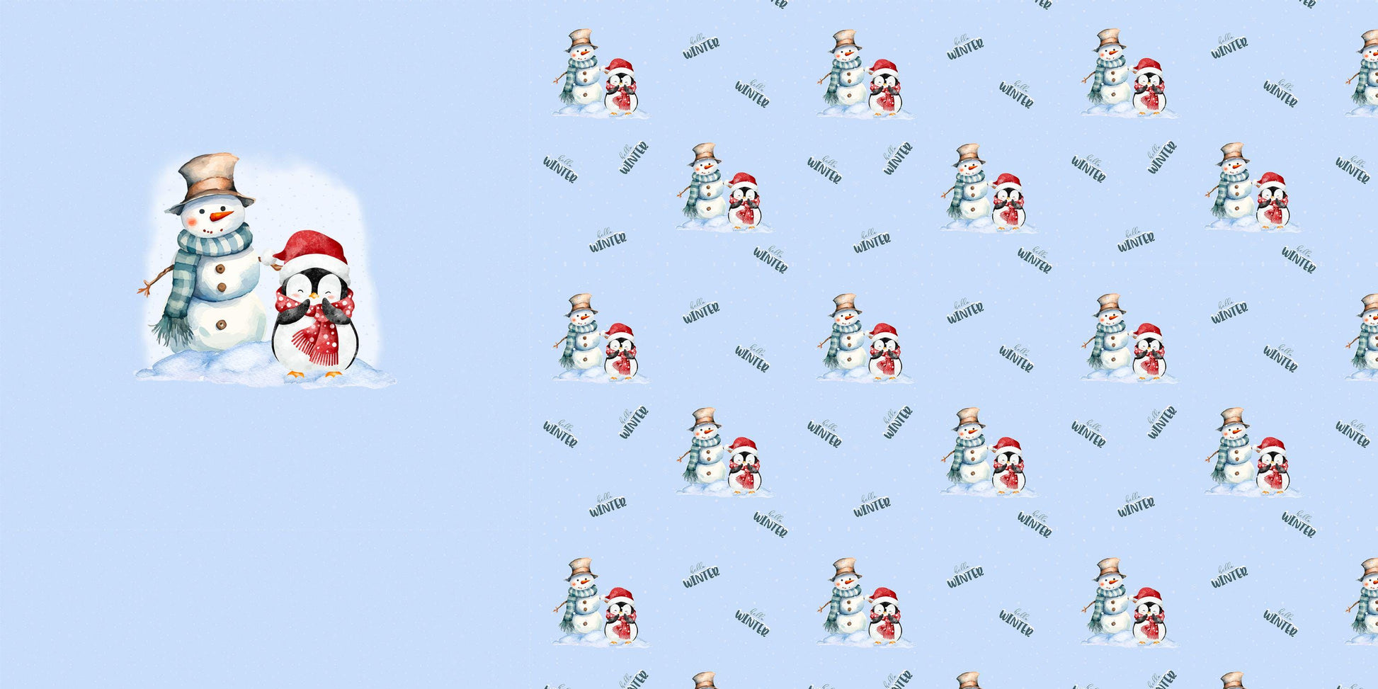 Panel „Hello Winter – Schneemann & Pinguin“ Stoff