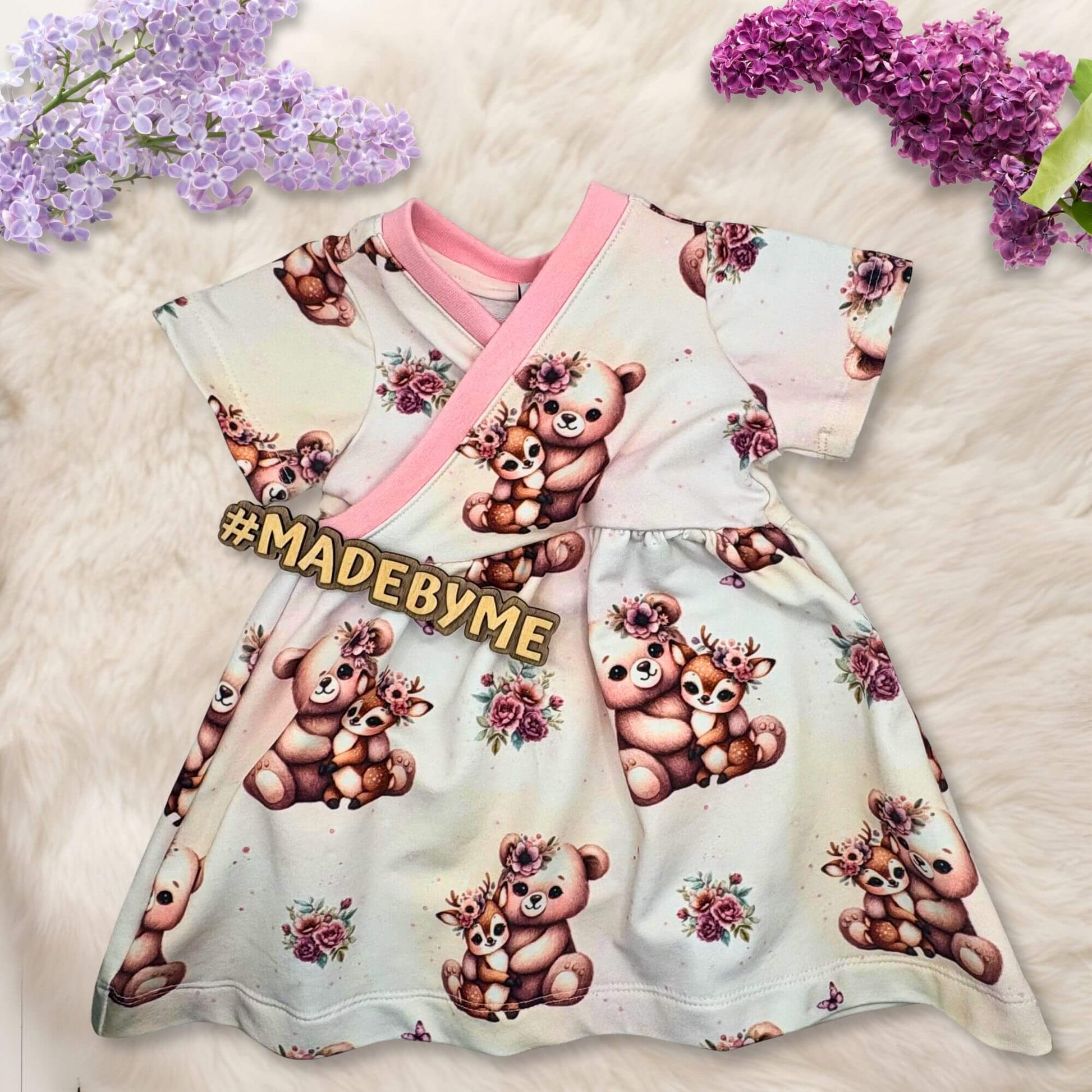 Handmade Baby Wickelkleid "Waldtiere" in rosa