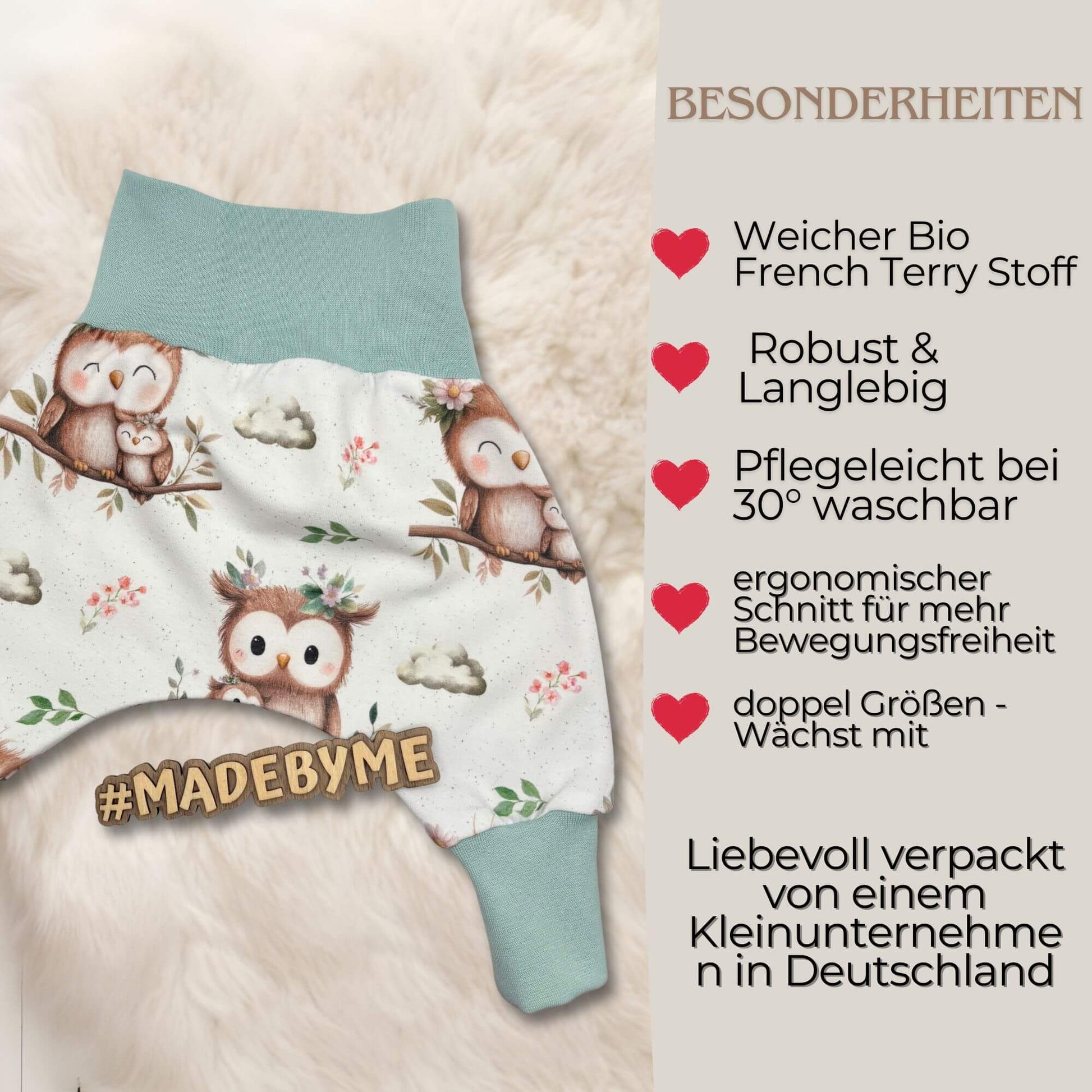 Handmade Baby-Pumphose aus weichem Bio-French Terry
