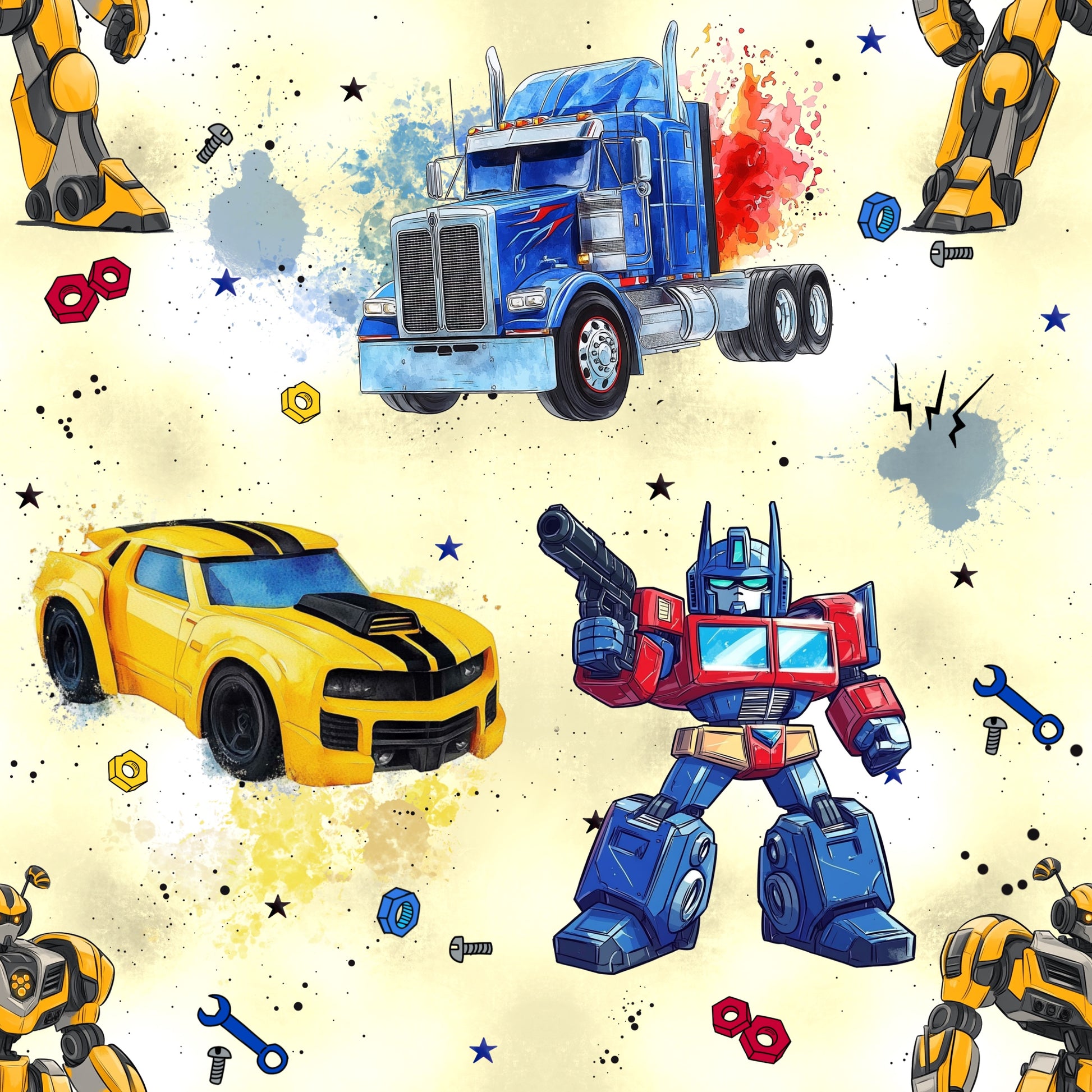 Unser Jersey oder French Terry RoboCars mit starke Roboter, schnelle Autos und mächtige Trucks sorgen für pure Action in jedem Nähprojekt! Das Design ist in 5 verschiedenen Hintergründen erhältlich – jeweils mit einem modernen Aquarell-Look in kräftigen Farben, der den Motiven noch mehr Dynamik und Tiefe verleiht. Diese hier ist in Blau gehalten.