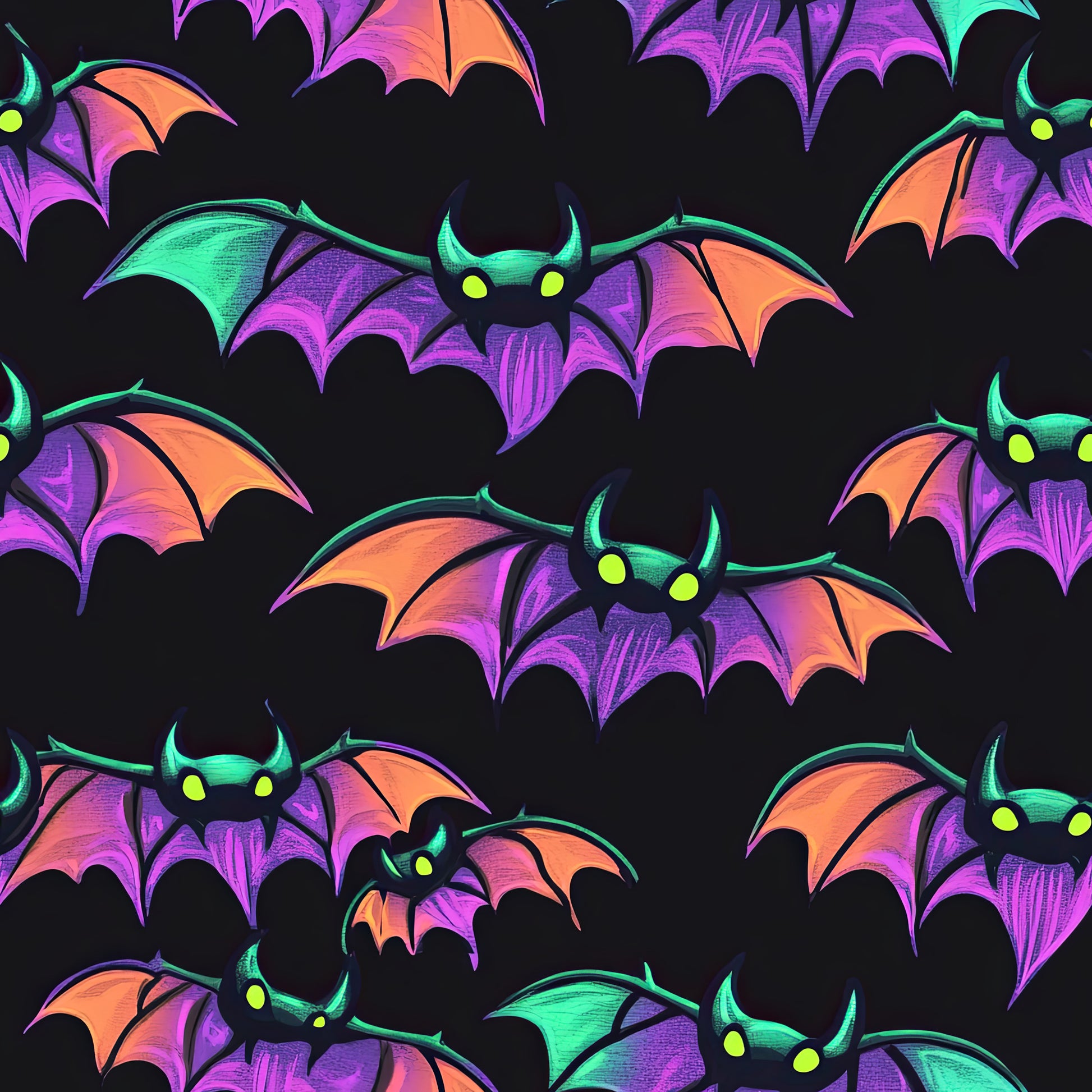 - 🦇 Auffälliges Neon-Fledermaus-Design auf Schwarz