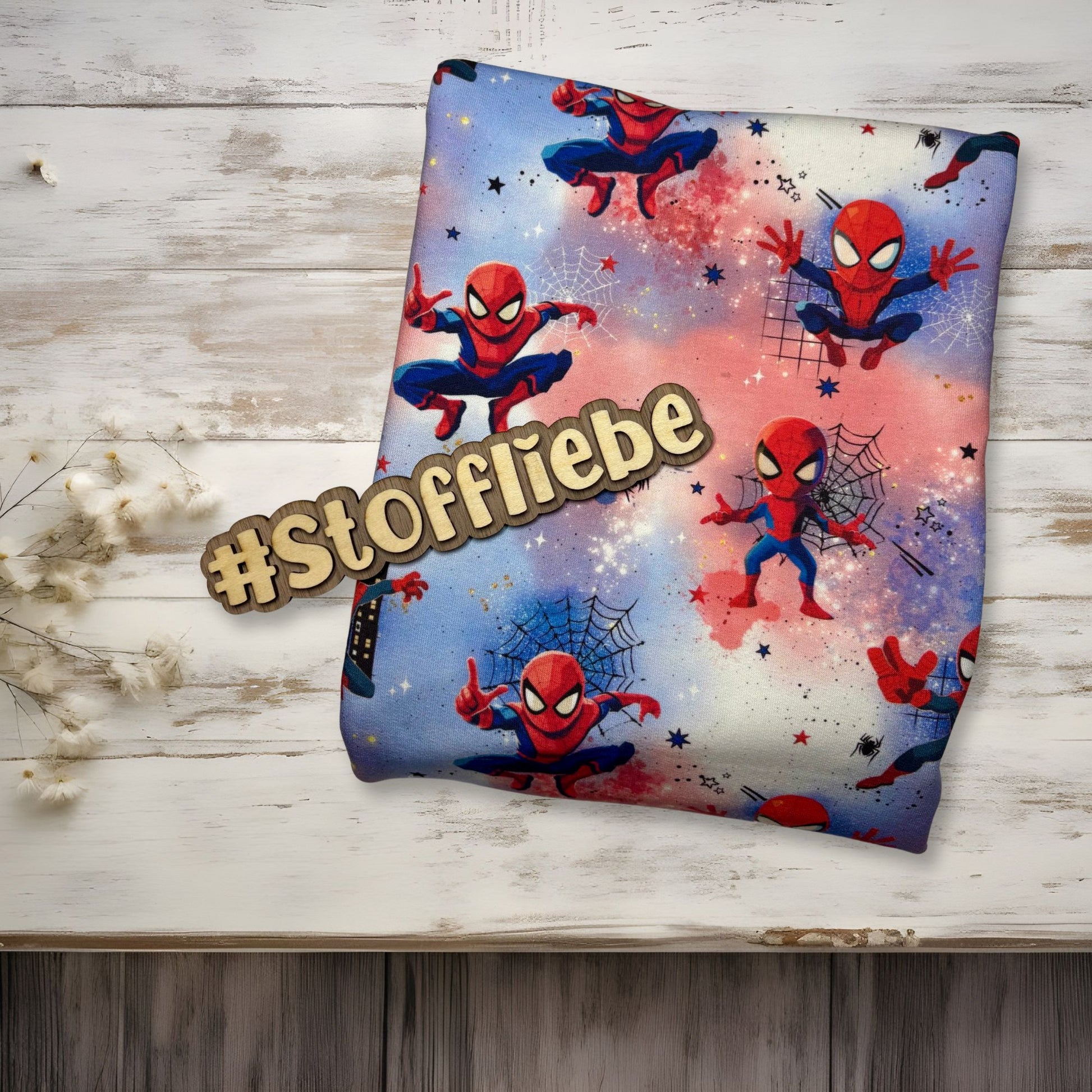🕷️ Superheld Stoff – „Spider Hero“ | Jersey | Rib Jersey | French Terry – Kinderstoffe Meterware 💥