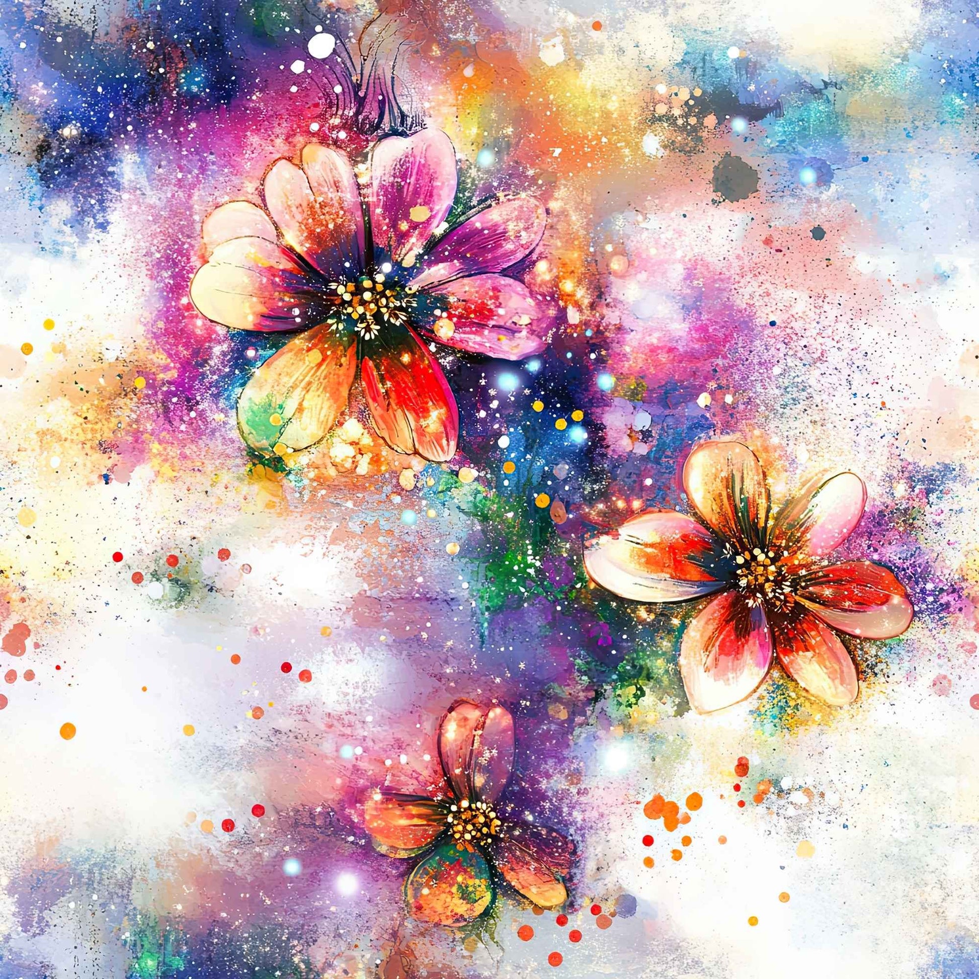 Farbenfroh, künstlerisch und voller Energie: Das Stoffdesign „Color Bloom“ begeistert mit leuchtenden Blüten, lebendigen Farbverläufen und dynamischen Aquarell-Sprenkel-Effekten. Kräftige Pink-, Orange-, Blau-, Grün- und Goldtöne verschmelzen zu einer ausdrucksstarken Komposition, die jedes Nähprojekt in ein echtes Statement verwandelt.