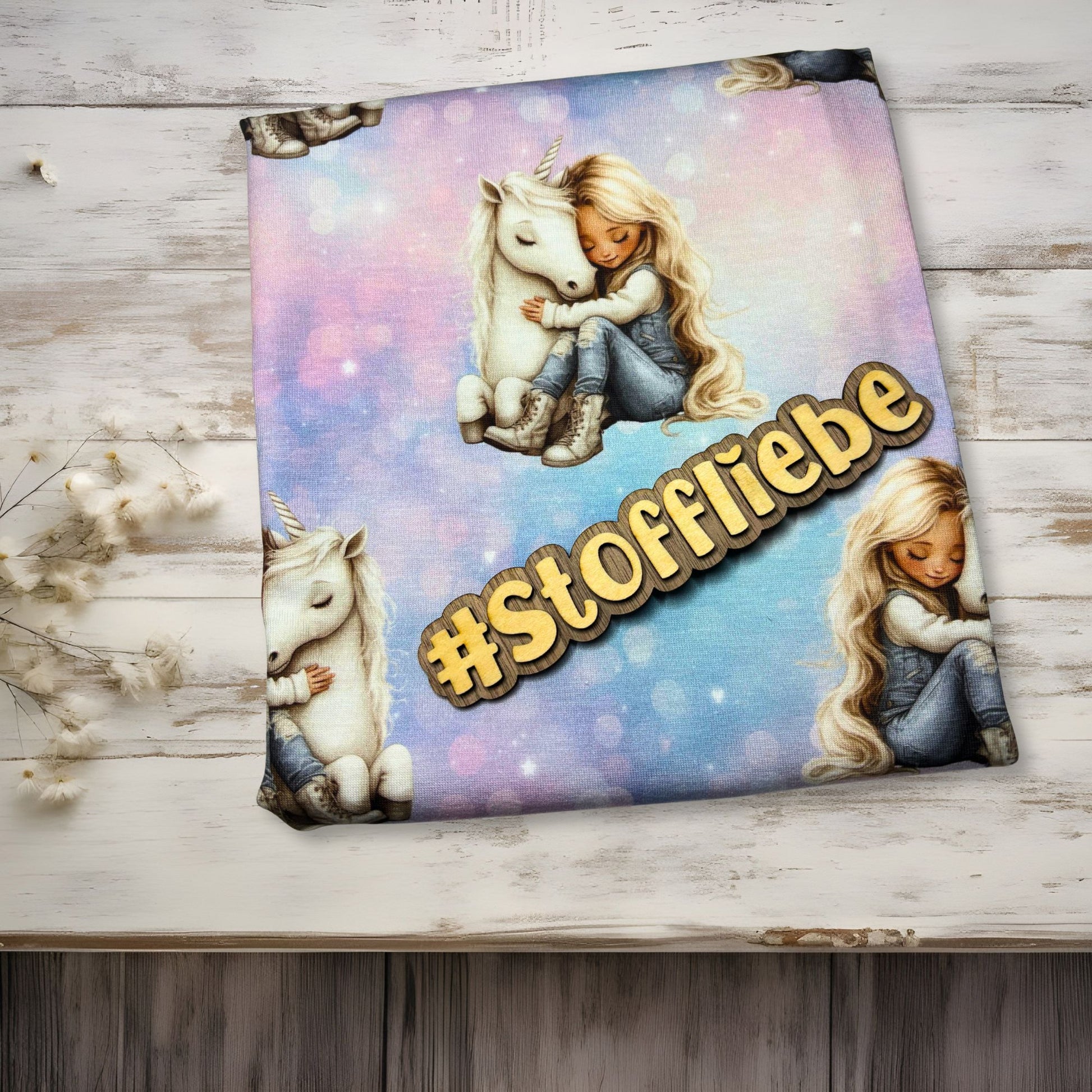 Mit diesem zauberhaften Einhorn-Stoff „Mädchen & Einhorn“ verwandelst du jedes Nähprojekt in ein echtes Lieblingsstück.