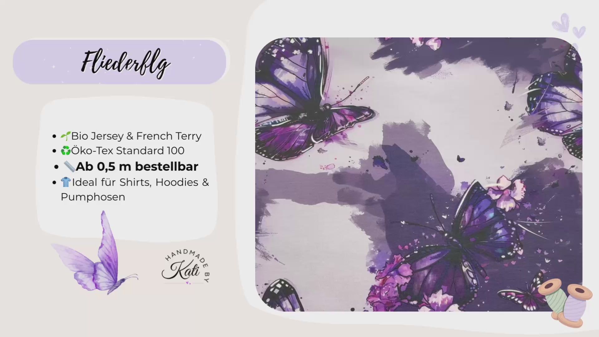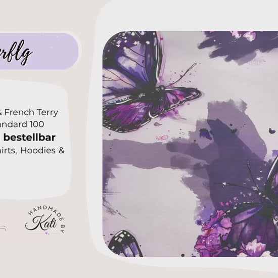 Tauche ein in eine Welt voller Leichtigkeit und Eleganz! Dieser wunderschöne Stoff zeigt detailverliebte, lilafarbene Schmetterlinge in Aquarell-Optik auf einem sanft getönten Hintergrund. Zarte Blüten und Farbsprenkel machen das Design zu einem echten Blickfang – ideal für romantische Nähprojekte!