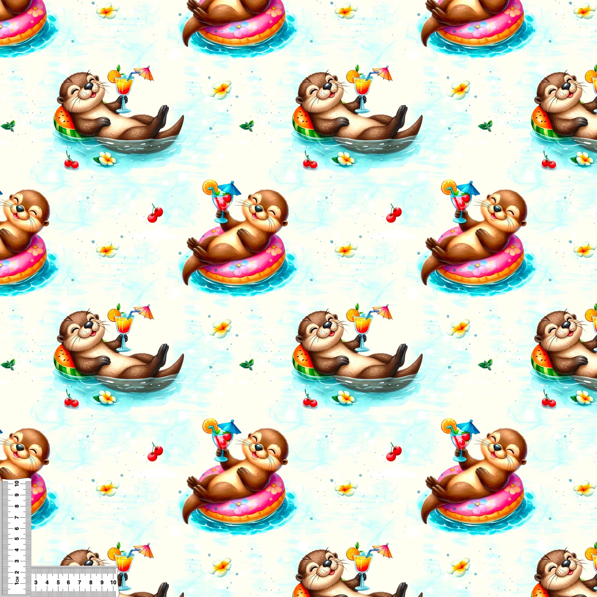 Dieser Stoff ist pure Sommerfreude! Der niedliche Otter relaxt auf einem bunten Schwimmring im Wasser, mit Cocktailglas in der Pfote und einer Sonnenbrille auf der Nase – bereit für die ultimative Poolparty. Ob als leichter Jersey oder gemütlicher French Terry, dieses Design eignet sich perfekt für verspielte Kinder-Outfits wie Shirts, Kleider, Pumphosen oder sommerliche Accessoires.